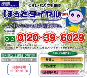 専門家相談(毎月第2土曜日)受付時間10:00~14:30 平日相談(月~金、祝祭日を除く)受付時間10:00~16:00