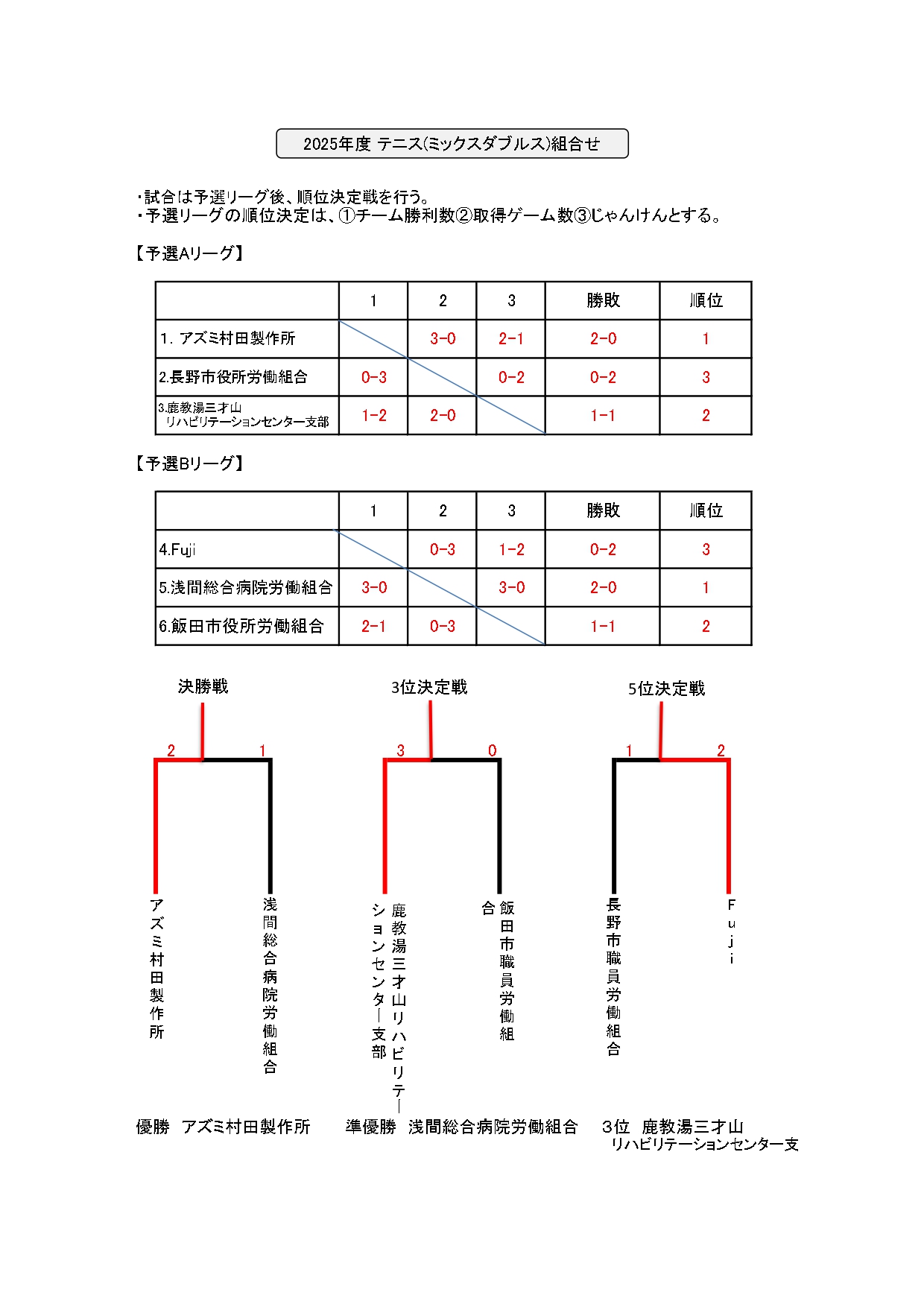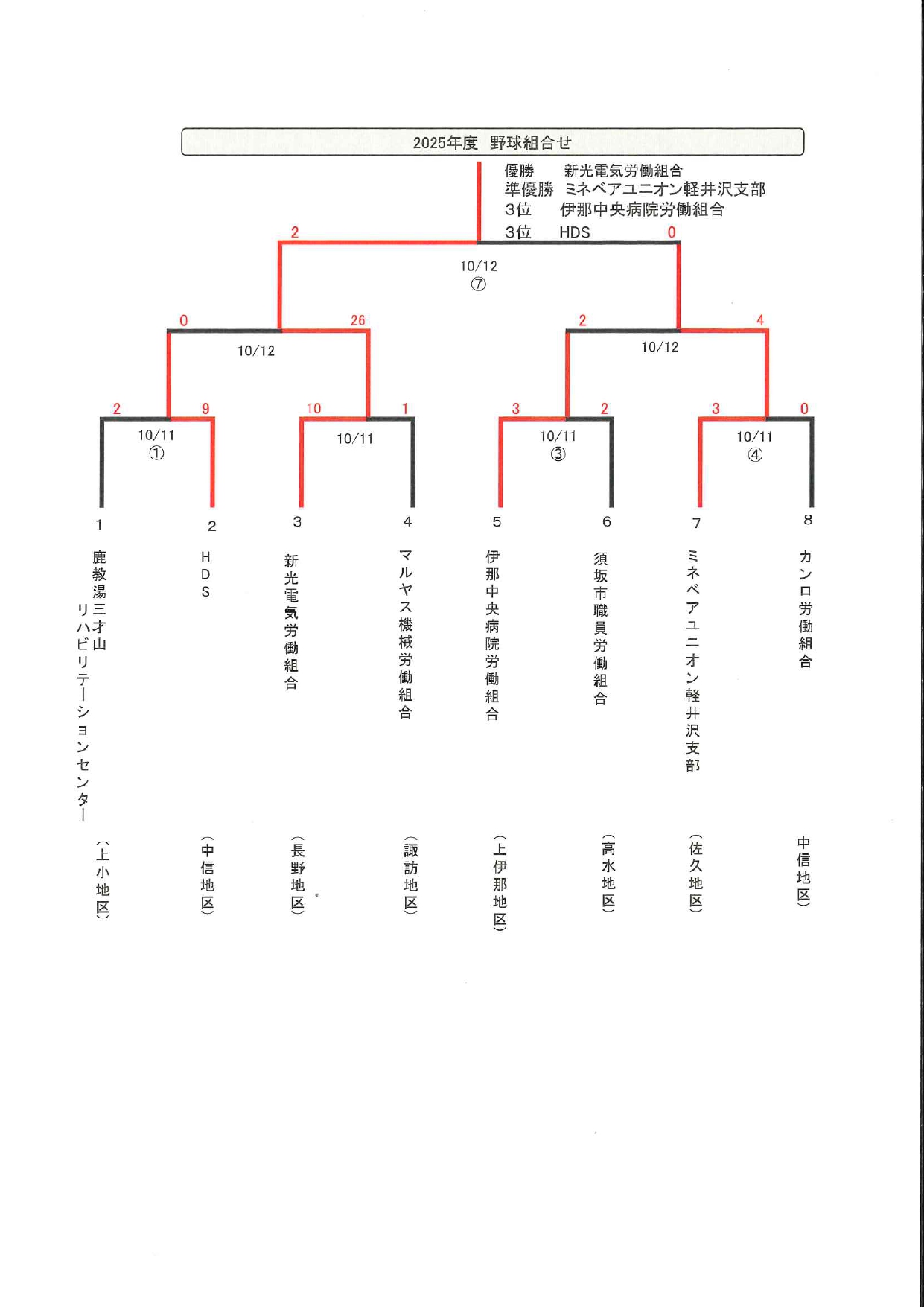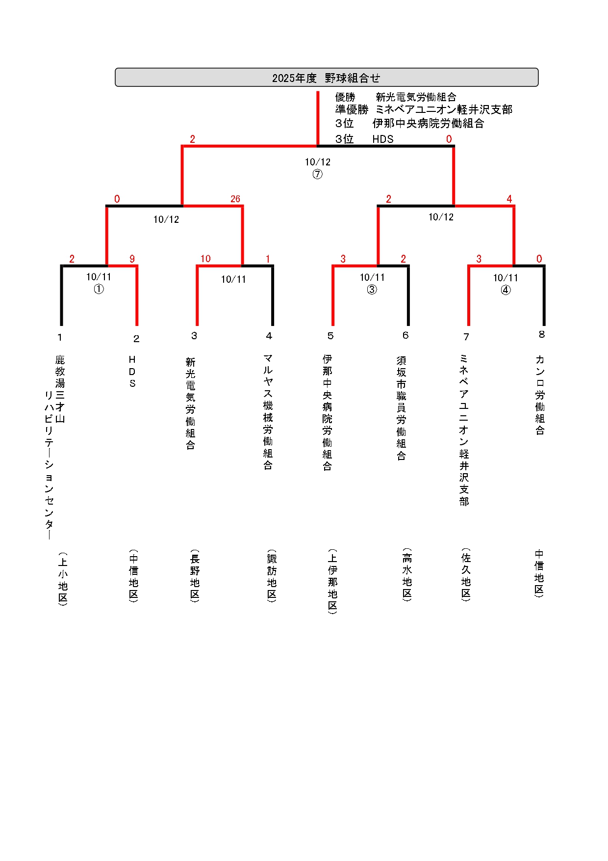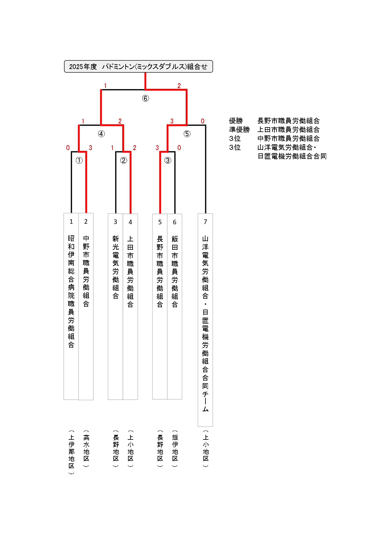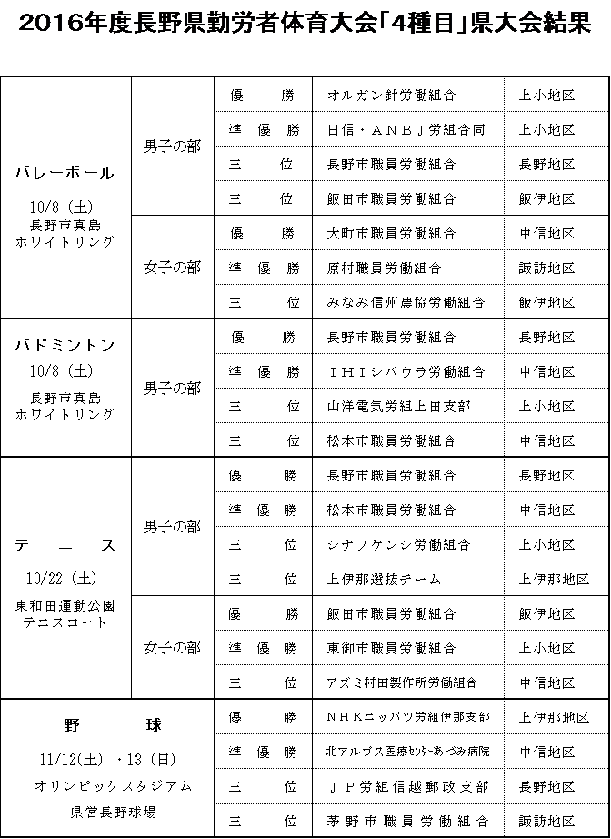 勤労者体育大会野球・バドミントン結果表